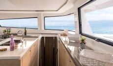 - Cubierta integral sin trampolín, característica de la gama Bali Catamarans.