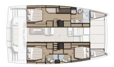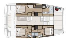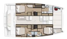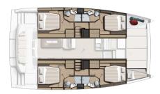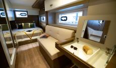 • Suite propietari (opcional) que ocupa tot el flotador de babord amb cambra de bany, sofà i llit de matrimoni.